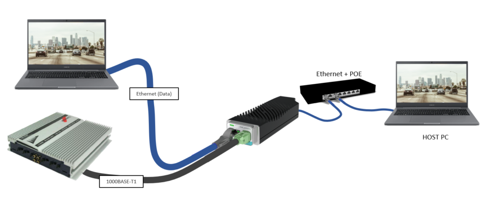 In automotive applications Advanced Driver Assistance Systems (ADAS) and autonomous vehicles (AV) use lots of sensors, controls and interfaces with higher bandwidth requirements. Automotive Ethernet provides a single universal medium for communication that allows different components to coexist on the same switched network. Whenever a Device Under Test (DUT) is equipped with Automotive Ethernet, PC control of the DUT requires a Media Converter that “translates” Ethernet to BASE-T1 protocol, i.e. standard Ethernet to Automotive Ethernet.