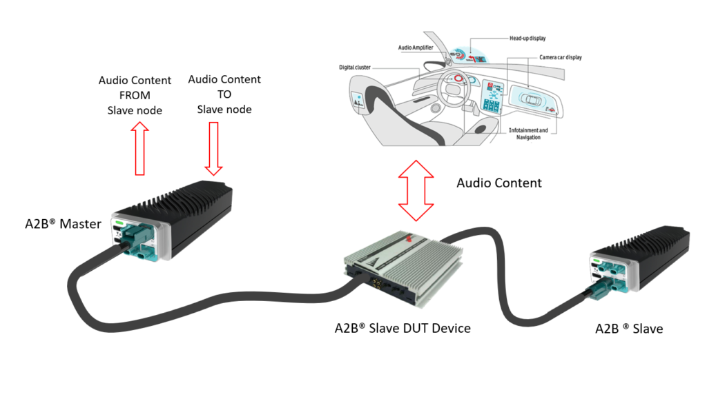 Flexmedia XM A2BFRTX2 module provides two independent A2B interfaces, configurable as Master or Slave device.